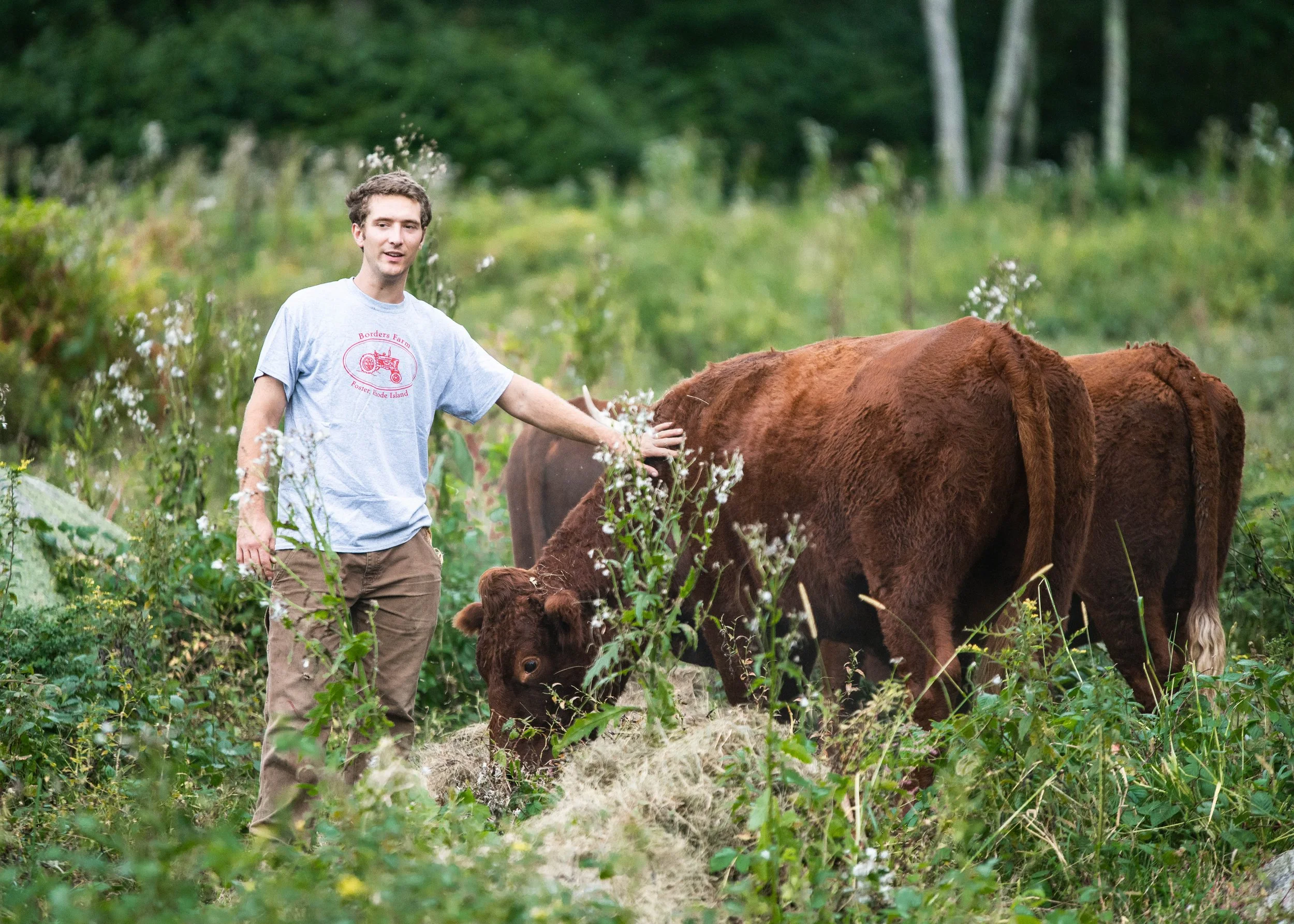 Farm Manager Zach Bain officially started working at Borders Farm in the Fall of 2018 but had previously enjoyed volunteering in the Community Garden when he was a high school student here in Foster. He now fulfills a variety of duties around the property including making hay for use on the farm, brush cutting invasive species in the fields and woods, and daily care for the 20-30 beef cows and calves. Working with the farm committee, Zach makes decisions on rotational grazing, field management, and cattle breeding. Zach also works with the USDA (US Department of Agriculture) and NRCS (Natural Resources Conservation Service) representatives to manage our woods and fields. He and his wife Lauren also operate Lucky Dogs Farm, a small scale farm based at Borders Farm selling plants, vegetables, flowers and more at the farm and local farm markets.